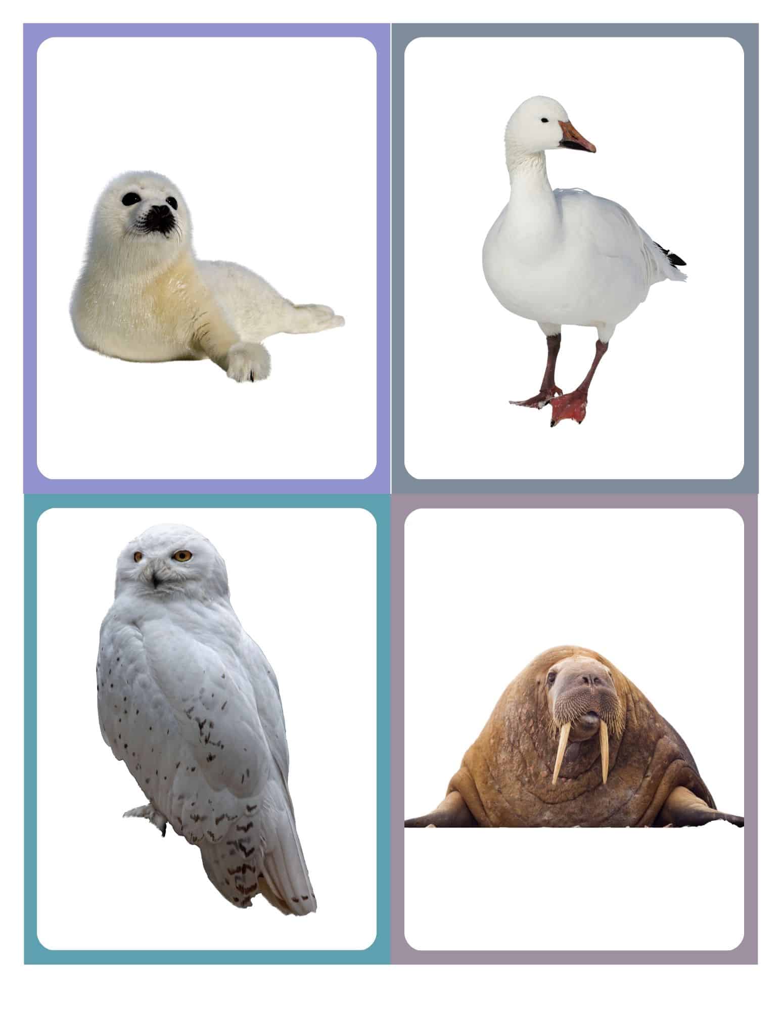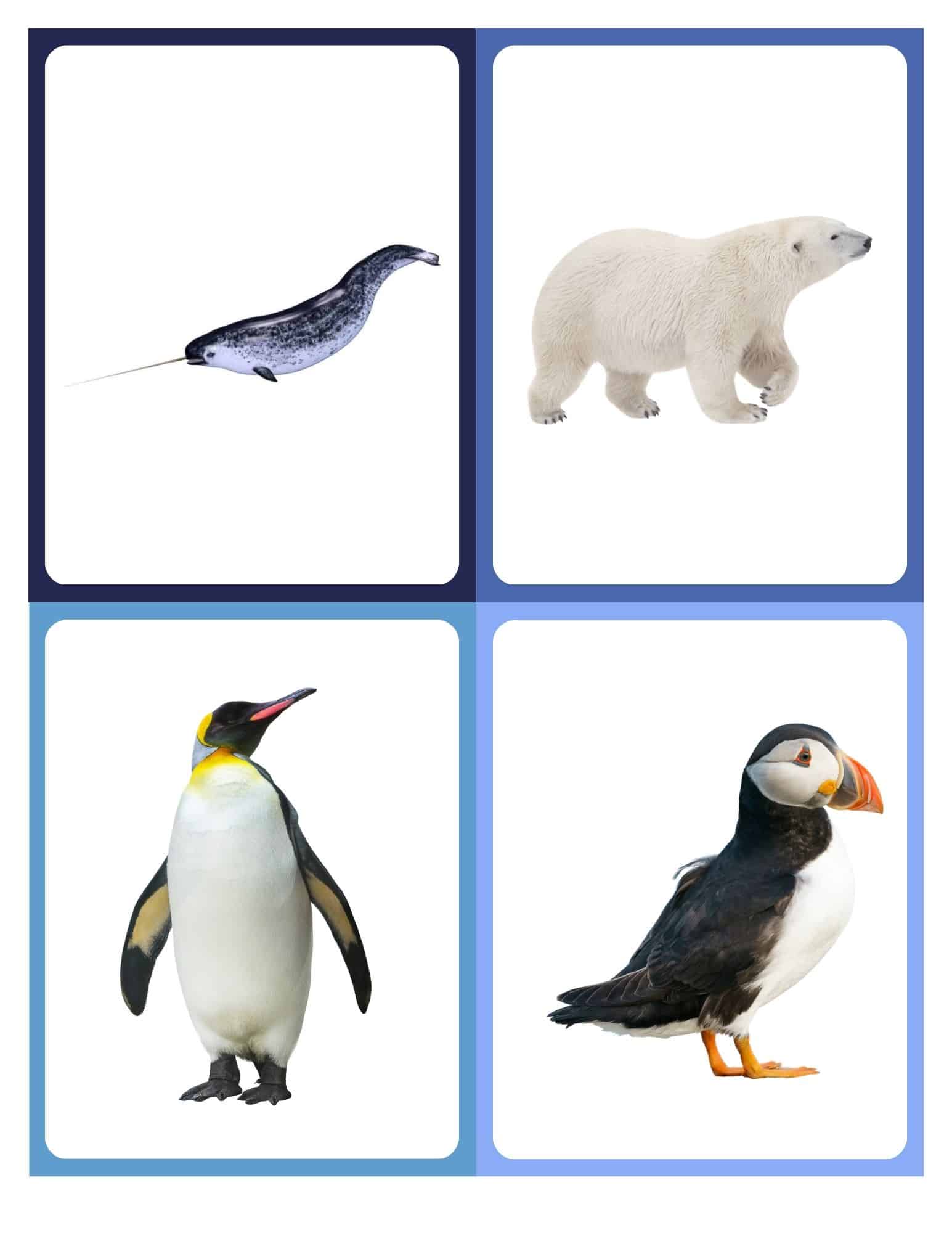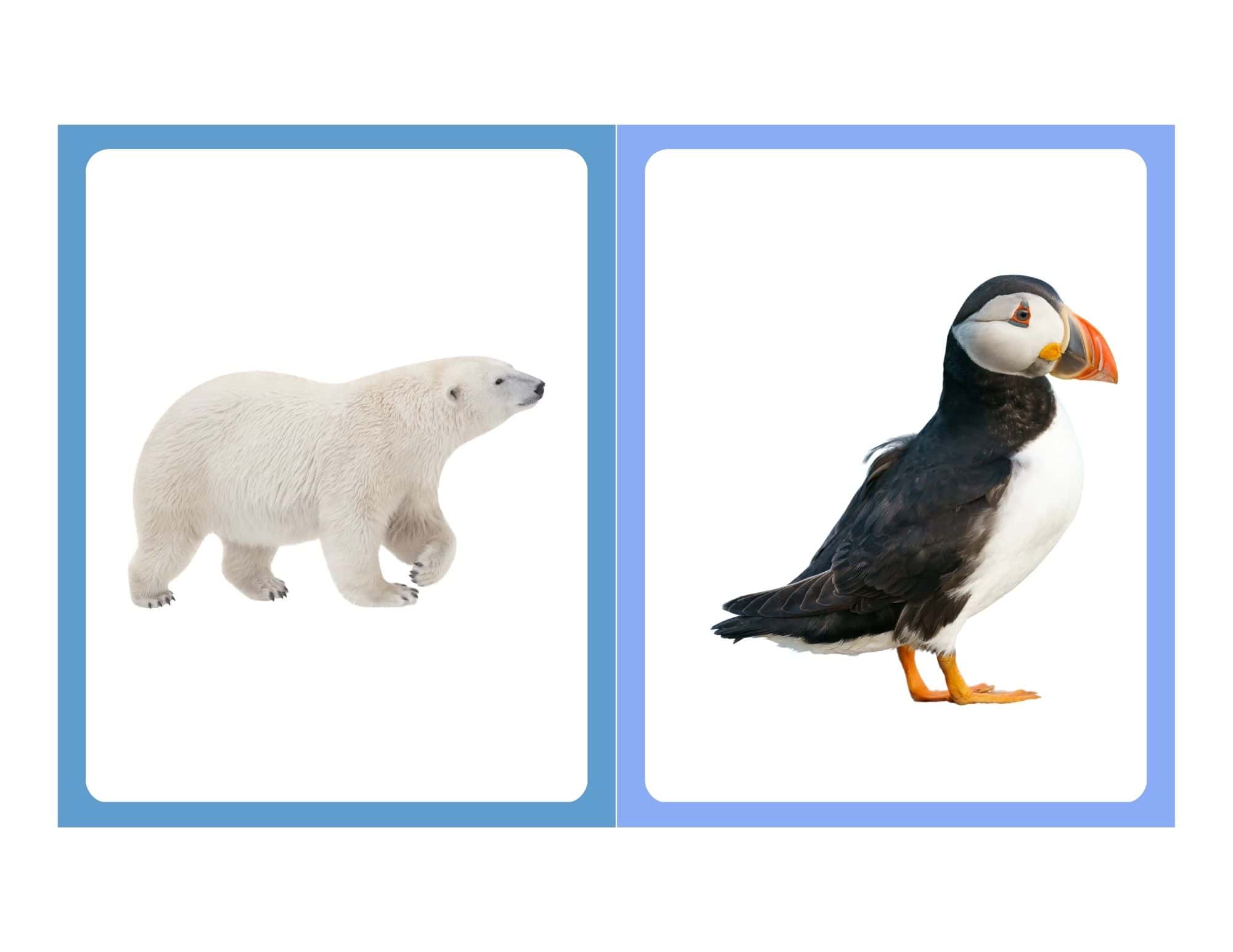 These free realistic arctic animal flashcards without words are perfect for kids learning about animals in cold climates.