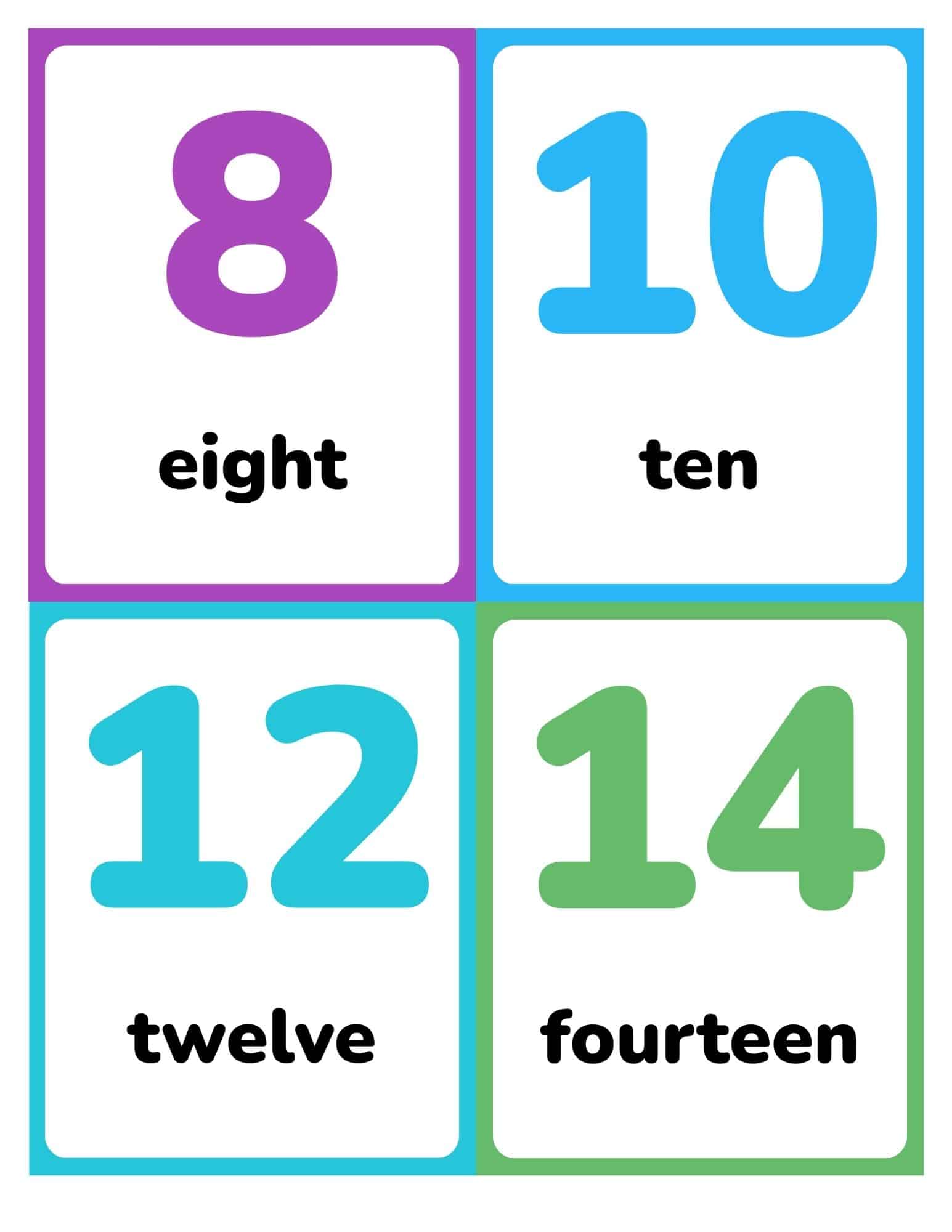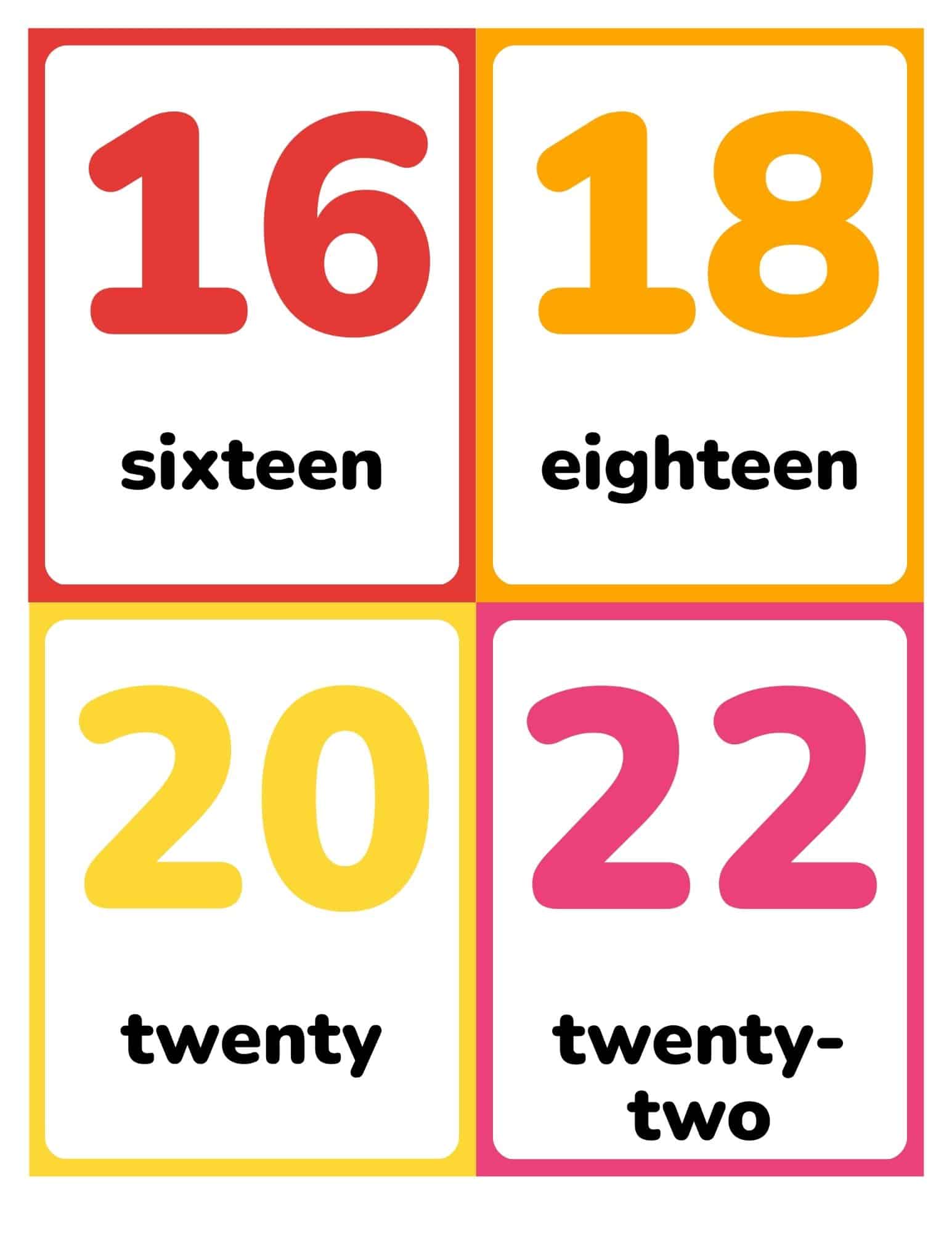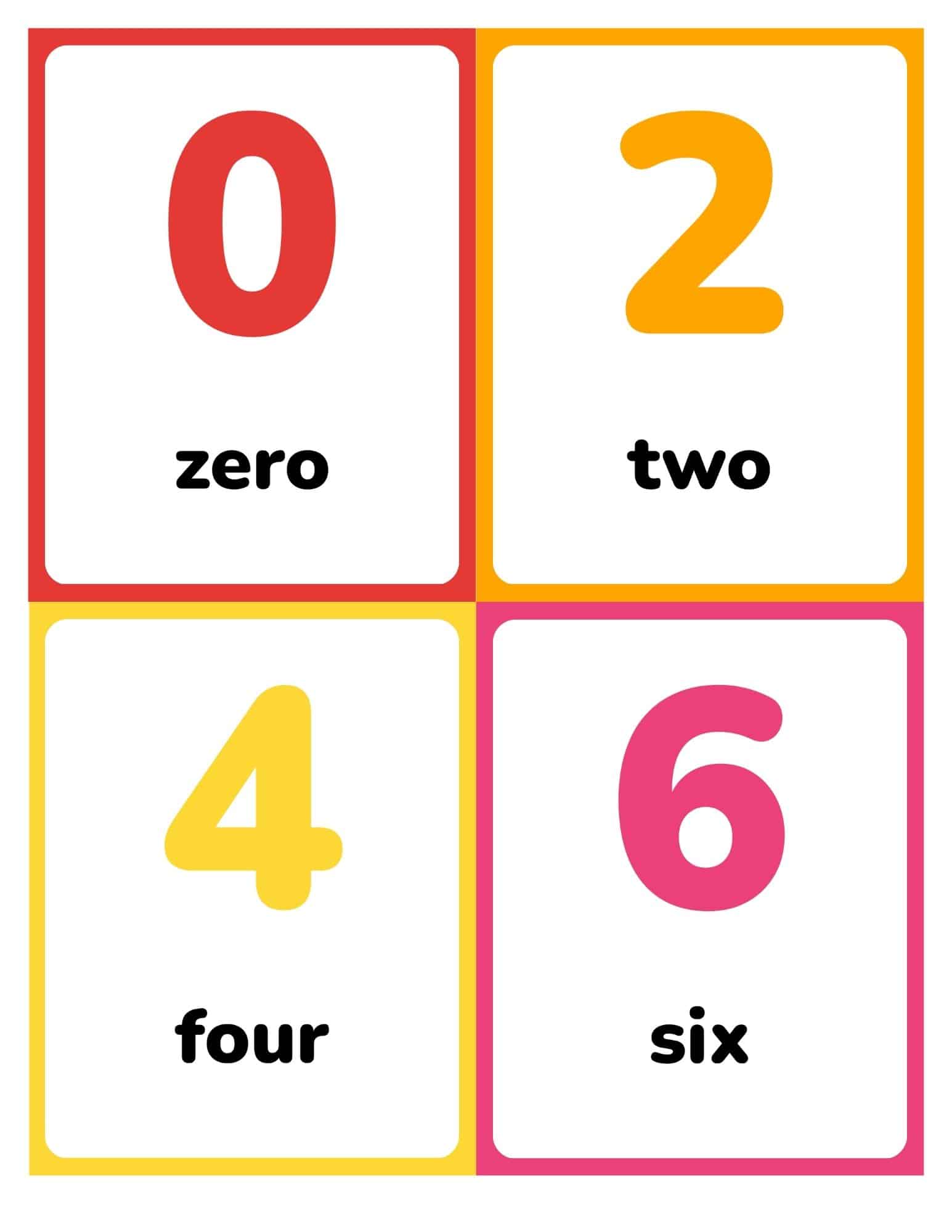 If you like these number flashcards, try the skip counting by fives flashcards or skip counting by tens flashcards. Need standard numbers? Use the no-text 0–100 set. To go simpler, try the numbers 0–20 with text version.