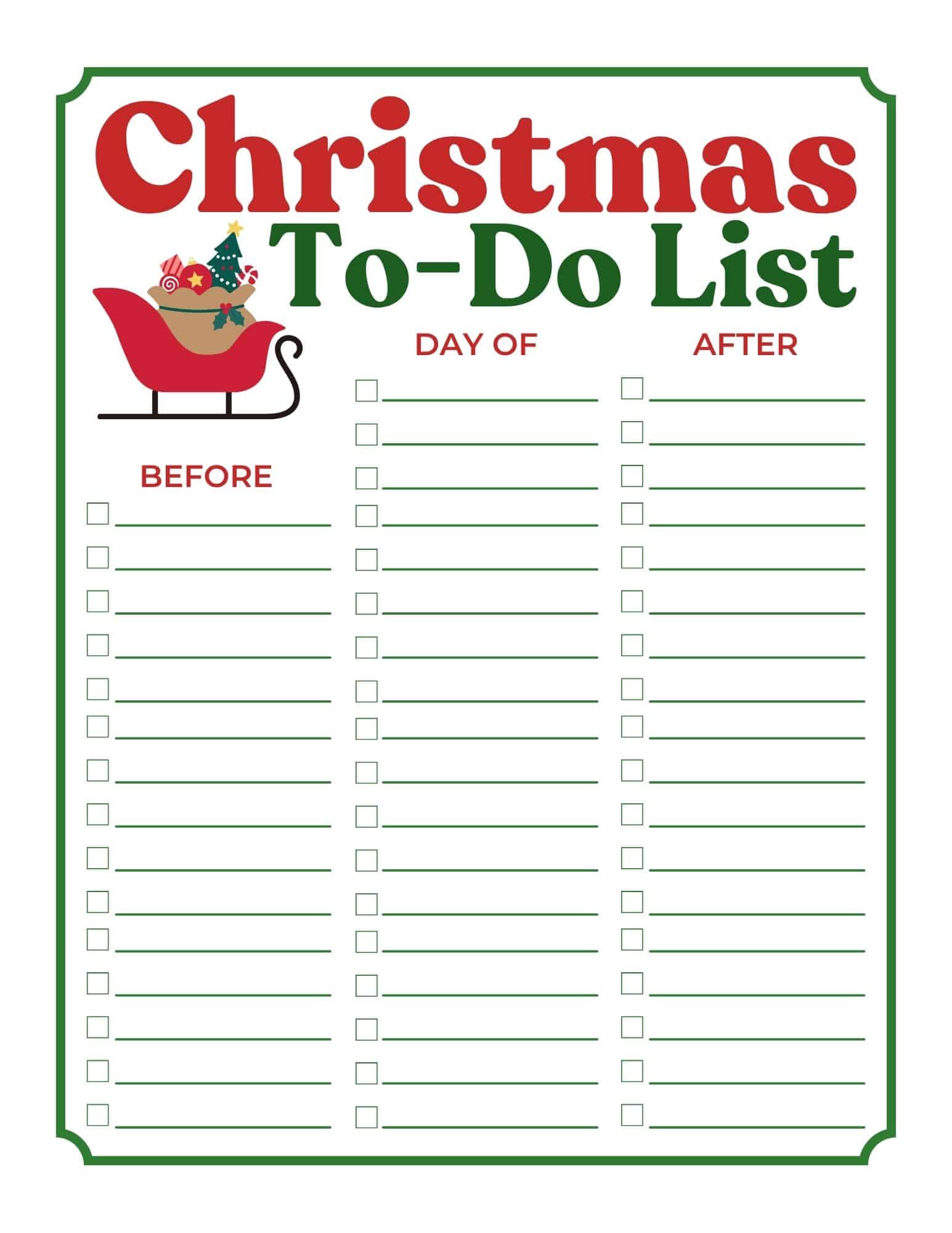 - Christmas To-Do List with checkboxes for before, day-of, and after tasks
