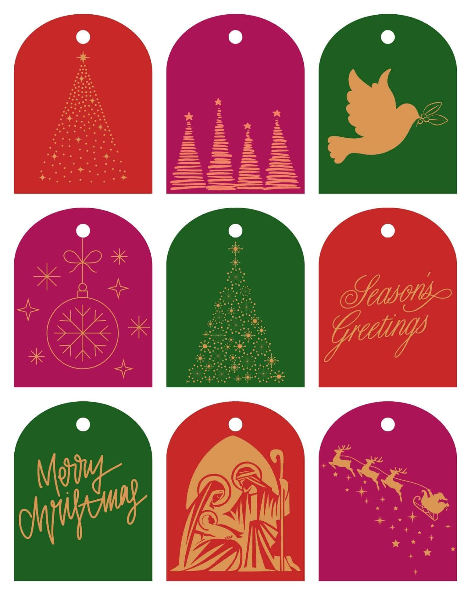 Christmas Gift Tags: These gift tags coordinate with the printable greeting cards. Get more Christmas gift labels here.