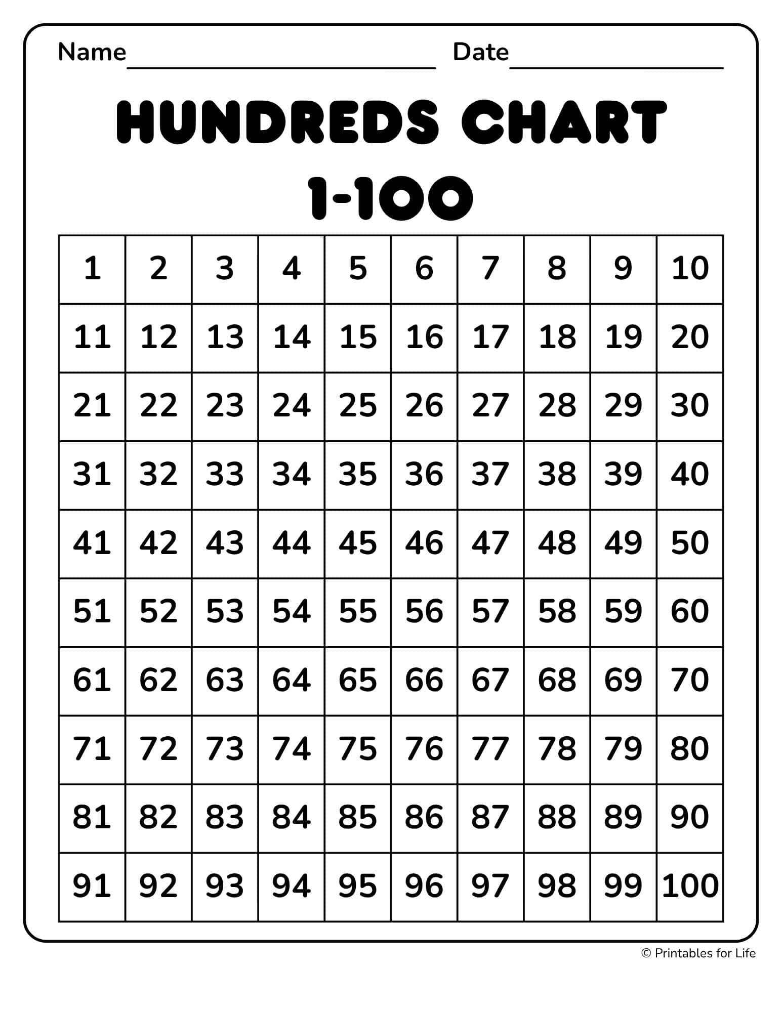 Click below to get your free 1-100 hundreds chart to print and use it for number practice anytime.
