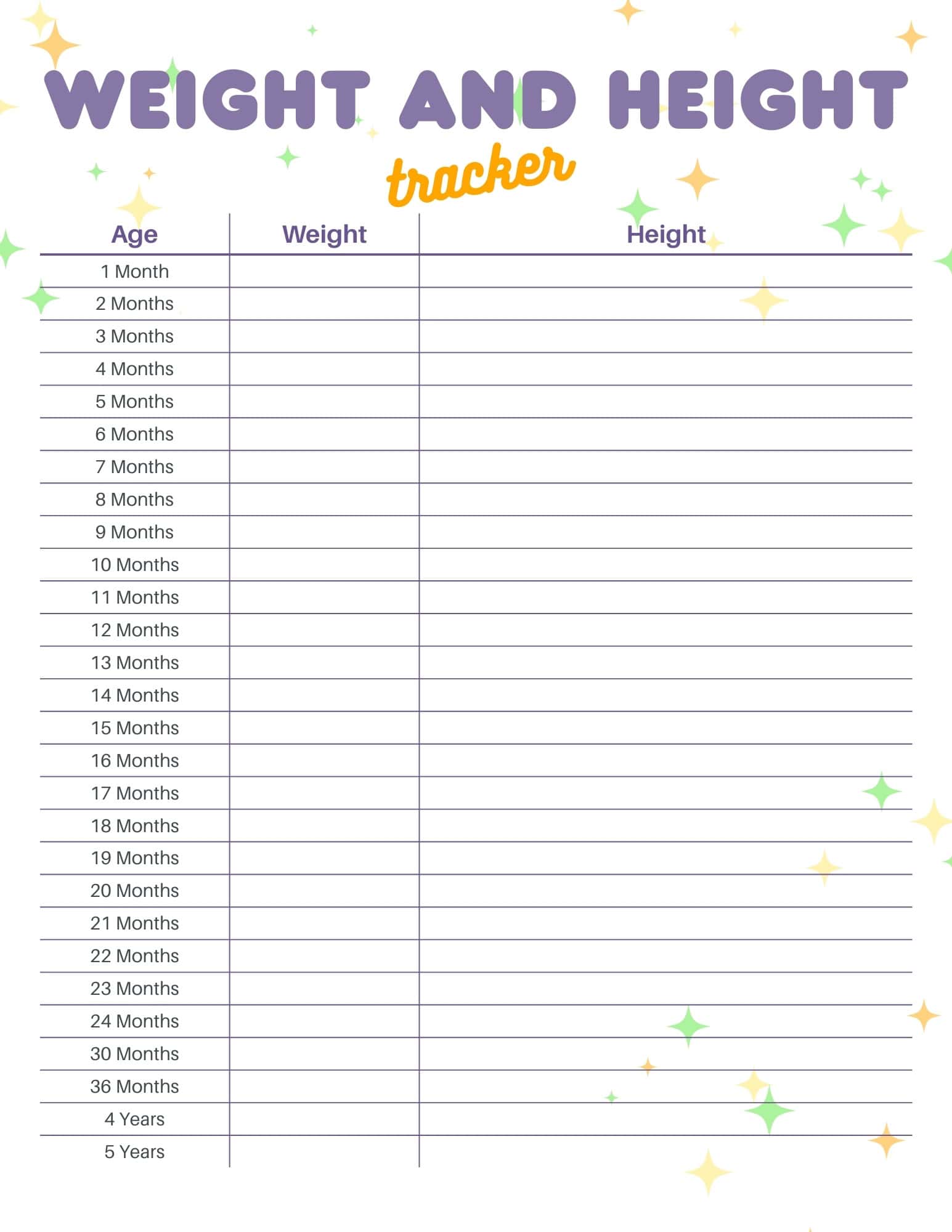 This purple and green gender neutral height and weight tracker is perfect for any child from birth to age 8.