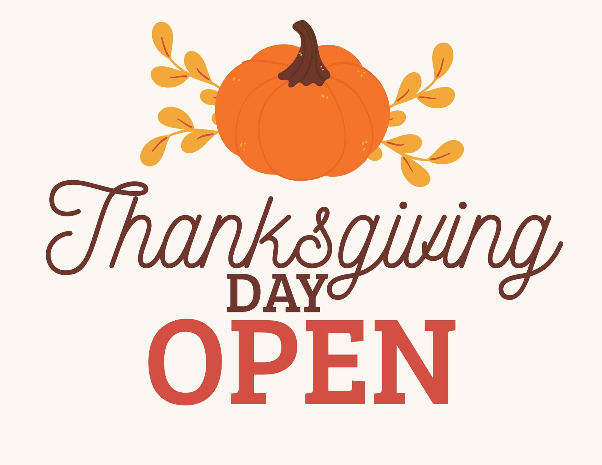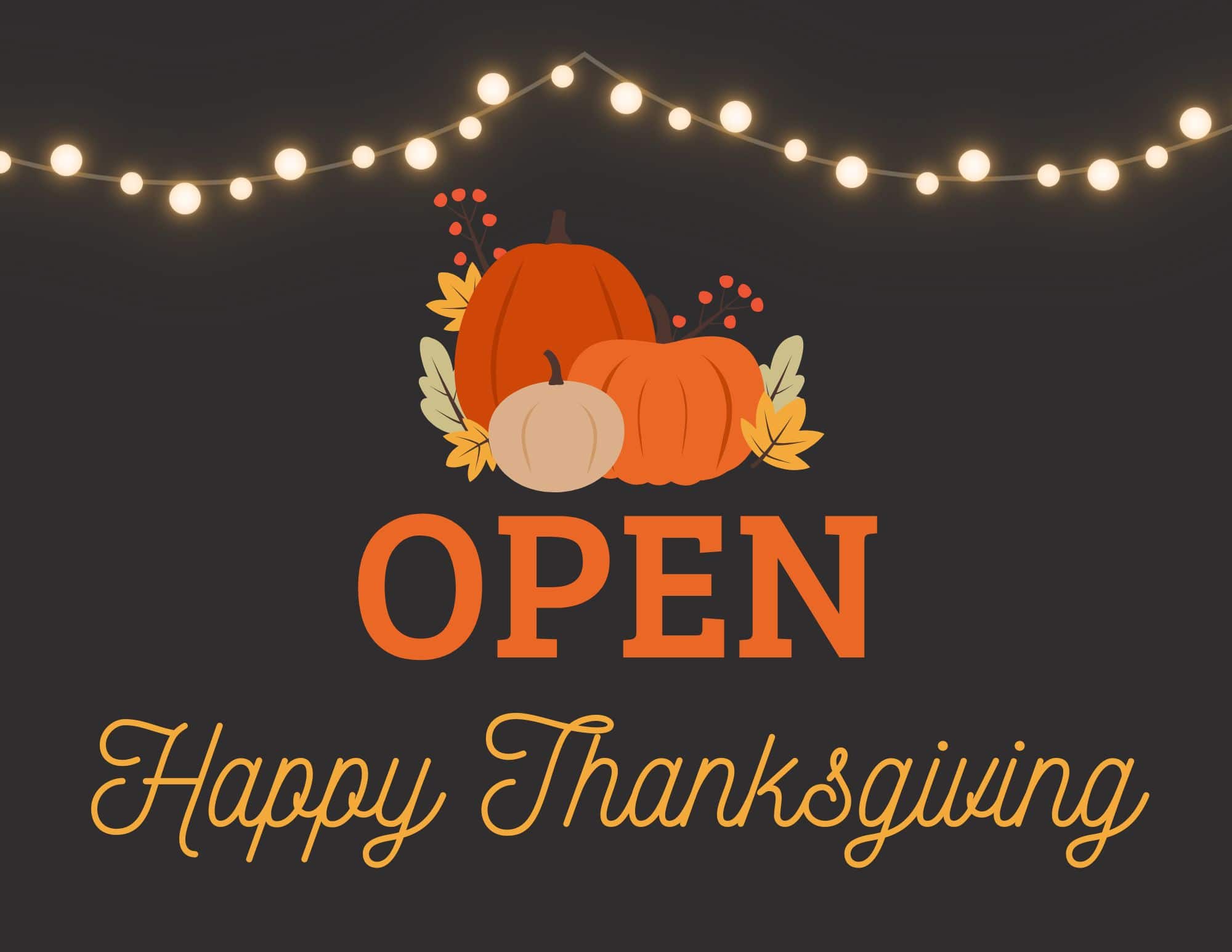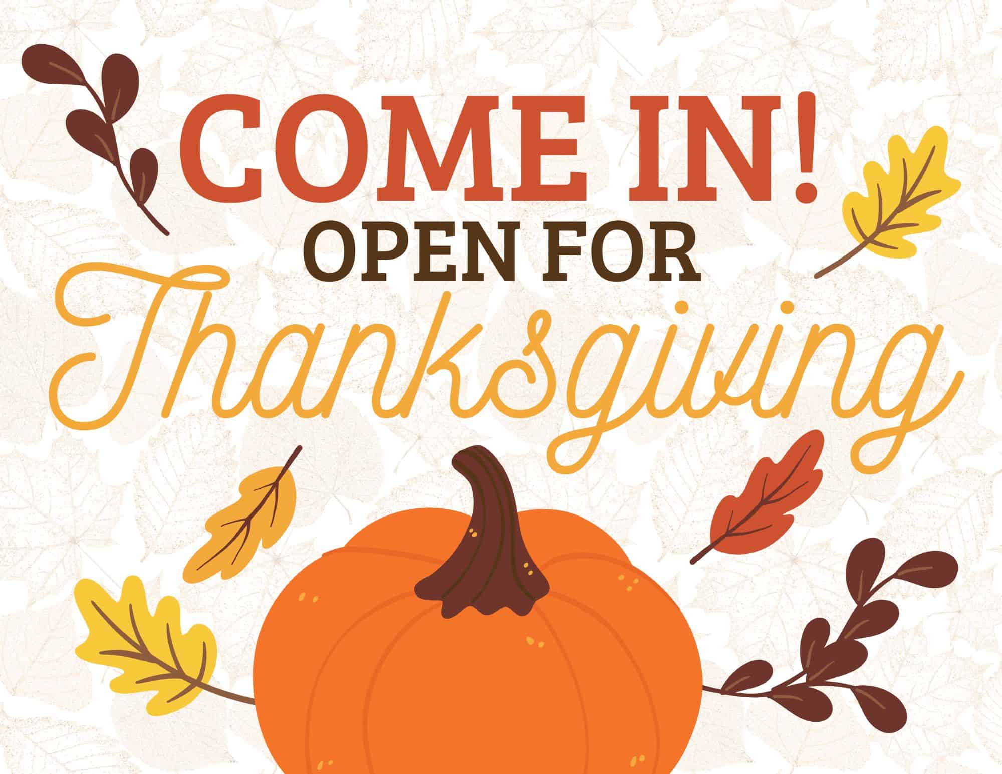 Let your customers know you’ll be open for Thanksgiving with this sign.