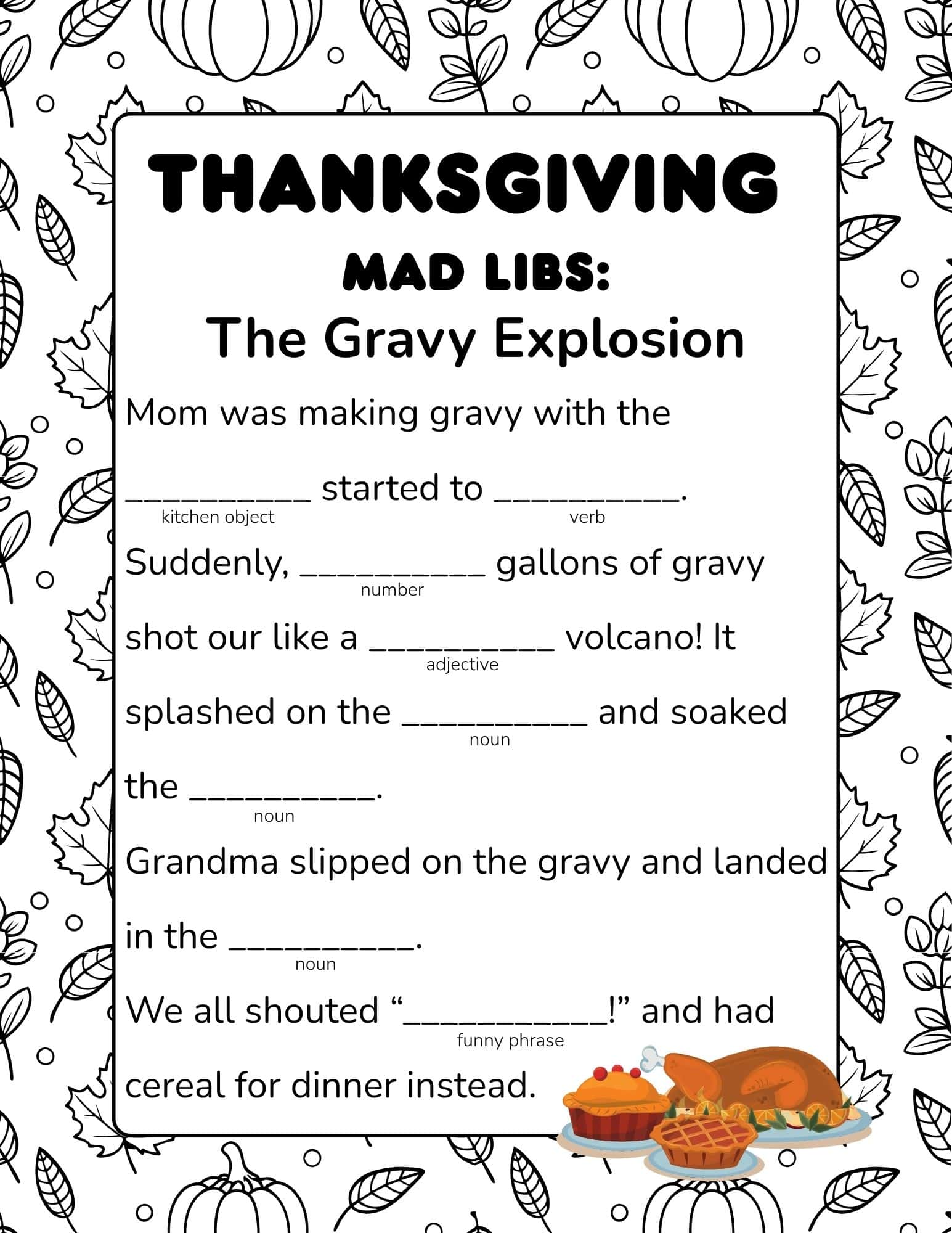 “The Gravy Explosion,” free printable Thanksgiving Mad Libs.